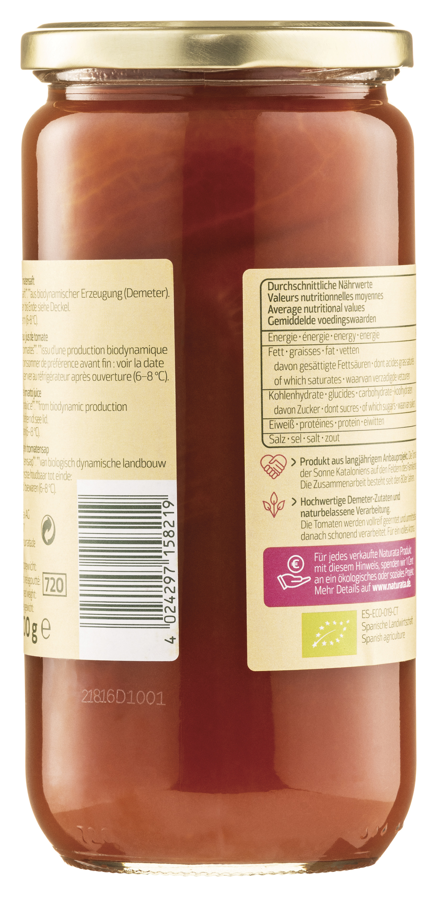 | Zutaten: | Tomaten** , Tomatensaft** **aus biodynamischem Anbau | ||||||||||||